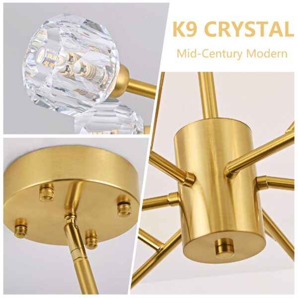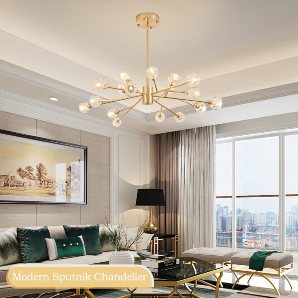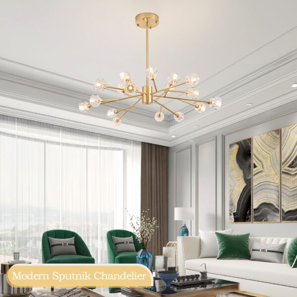 - 【Elegant and Unique Sputnik Chandeliers】The body of the lamp is embellished with 18 clear high quality K9 crystals, elegant and soft light through the crystals embedded in the main frame, refracting gorgeous and cozy light effects from many angles, suitable for all kinds of places to make your room shine and make you feel the gorgeous visual effect