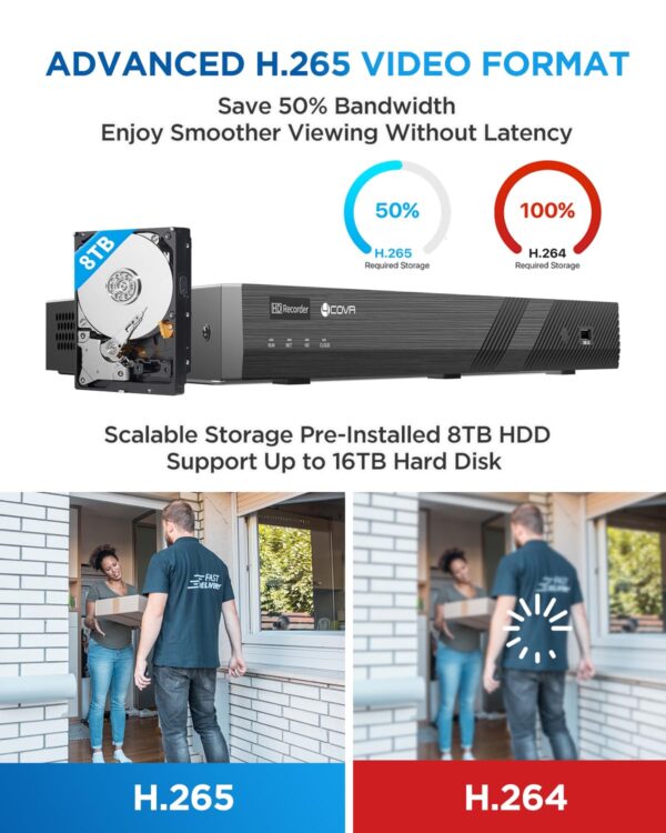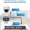 - EASY POE SETUP – PLUG & PLAY: For this 32 Channel NVR Security Systema connection, we provide a 24 ports PoE switch to connect camera and NVR by using a single network cable, running power and video transmission simultaneously without additional power outlet.