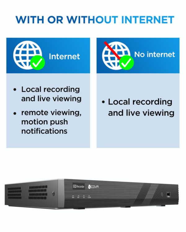 - REAL-TIME LIVE VIEWS & PLAYBACK: The system supports local playback and real-time live view, even without the Internet. If connected to the Internet, you can also use the GUARD VIEWER APP to view remotely and receive alarm pushes anytime, anywhere.