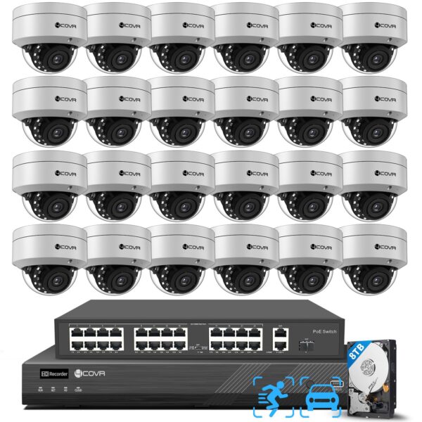 4COVR 12MP Security Camera System 32 Channel PoE with Mic, 24X 12MP IK10 Vandal-Proof Dome IP Camera IP67, AI Person Vehicle Detection, UHD NVR & 8TB HDD, Commercial Surveillance Outdoor, LY54AXAM3224