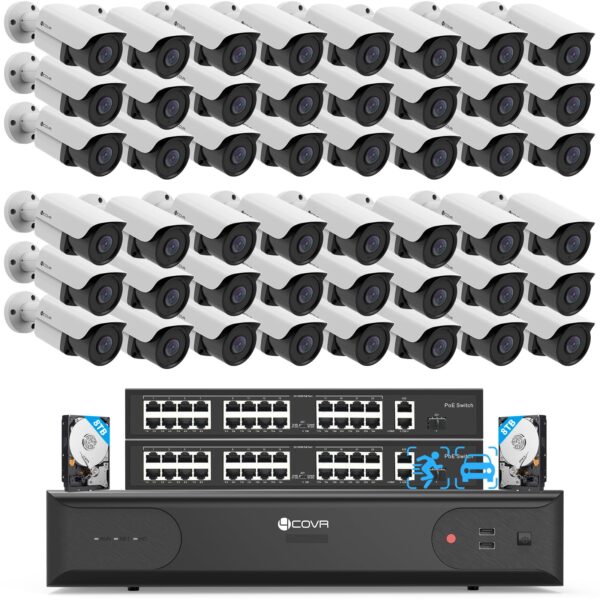 4COVR 64 Channel Security Camera System PoE & AI Human/Vehicle Detection, UtraHD 8MP NVR 16TB HDD, 48Pcs 5MP Commercial Bullet IP Camera IP67 Night Vision, 24/7 Business Surveillance, LY37EX5M6448