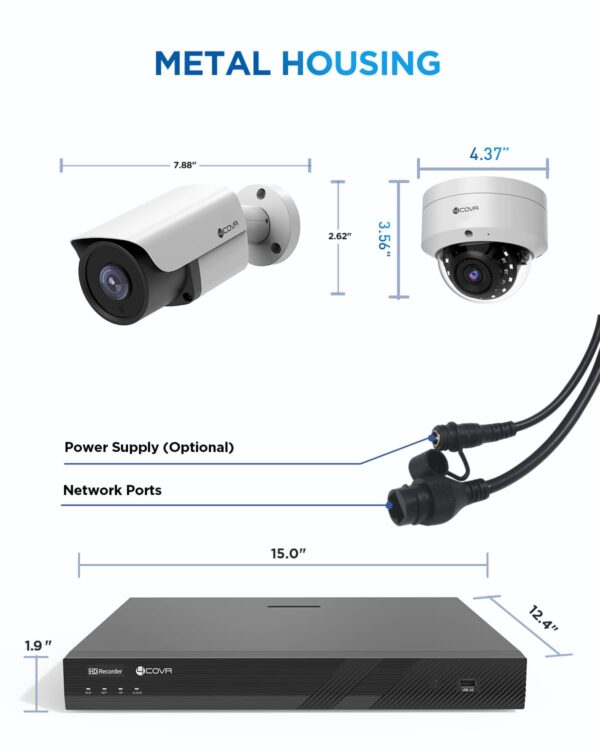 - IP67 WEATHERPROOF DESIGN: Build with durable metal housing, our security cameras withstand the harshest weather conditions like dust, rain, and extreme temperature ranging from -20°C to 50°C.