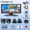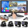 4K RV Backup Camera System 10.36″ Quad Split Touch Screen Monitor with 4 1080P Rear Side View Camera, DVR Recording Bluetooth MP3 MP5 IP69 Waterproof Night Vision for RV Truck Trailer Tractor