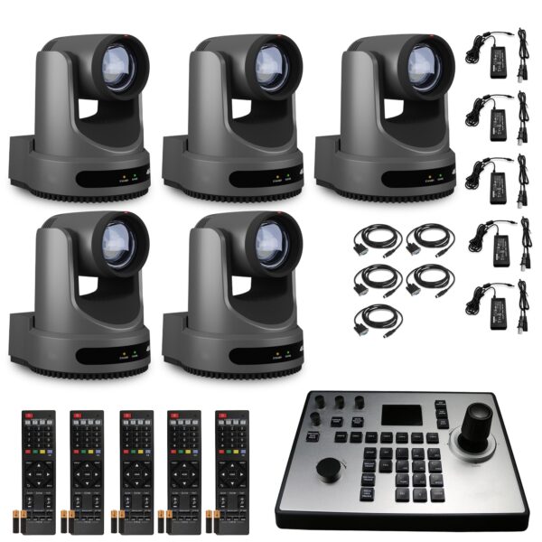 - Bundle Includes: 5 x PTZOptics Move 4K SDI/HDMI/USB/IP PTZ Camera with 20x Optical Zoom (Gray), 1 x PTZOptics PT-JOY-G4 IP/Serial Joystick Controller (4th Generation)