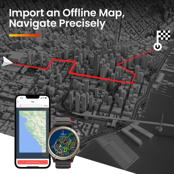 - ADVANCED ROUTE NAVIGATION: Downloadable offline maps on this smartwatch enable precise route planning, making it an ideal running watch for dynamic outdoor training and adventures