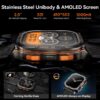 - ⌚MILITARY GRADE STANDARD(MIL-STD-810H) & STAINLESS STEEL BODY – AMAZTIM M3 Ultra smart watch features Corning Gorilla screen, Mohs hardness up to 9H, it’s strong enough to deal with a range of screen-destroying behaviors. Military-grade Stainless Steel materials make it indestructible and most durable. Successfully passed 15 military tests of the highest military toughness standard (MIL-STD-810H), including salt spray, rain, impact, etc. It can easily face any harsh environment.