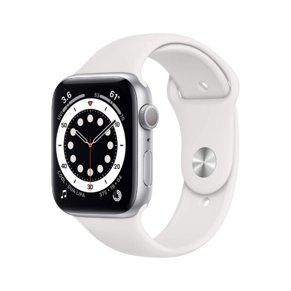 Apple Watch Series 6 (GPS, 44mm) – Silver Aluminum Case with White Sport Band (Renewed)