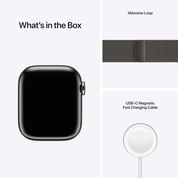Apple Watch Series 7 [GPS + Cellular 41mm] Smart Watch w/Graphite Stainless Steel Case with Graphite Milanese Loop. Fitness Tracker, Blood Oxygen & ECG Apps, Always-On Retina Display, Water Resistant