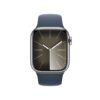 Apple Watch Series 9 [GPS + Cellular 41mm] Smartwatch with Silver Stainless Steel Case with Storm Blue Sport Band S/M, Always-On Retina Display