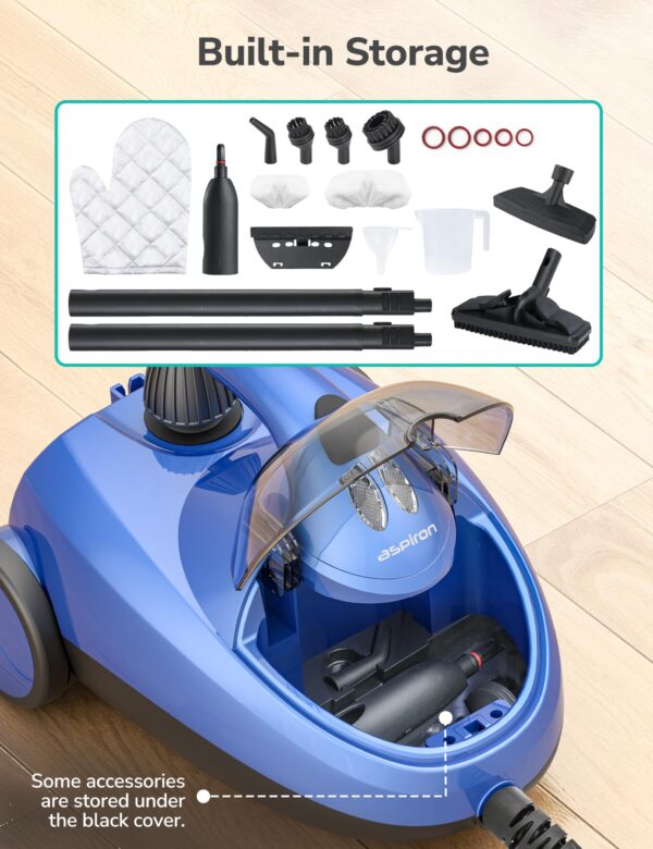 Aspiron Steam Cleaner, Multipurpose Heavy Duty Canister Steamer, Built-In Storage, Handheld Steam Mop for Home Car Upholstery Bed Furniture Carpet Bathroom Tile Grout Floor Cleaning, Blue