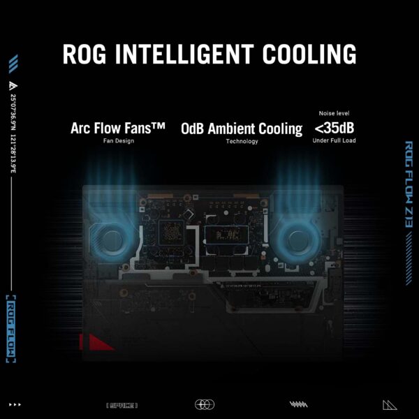 - ROG INTELLIGENT COOLING – Great performance in such compact space can only be achieved with even greater cooling, and the Z13 takes it to the next level, with liquid metal on the CPU and a custom vapor chamber module.