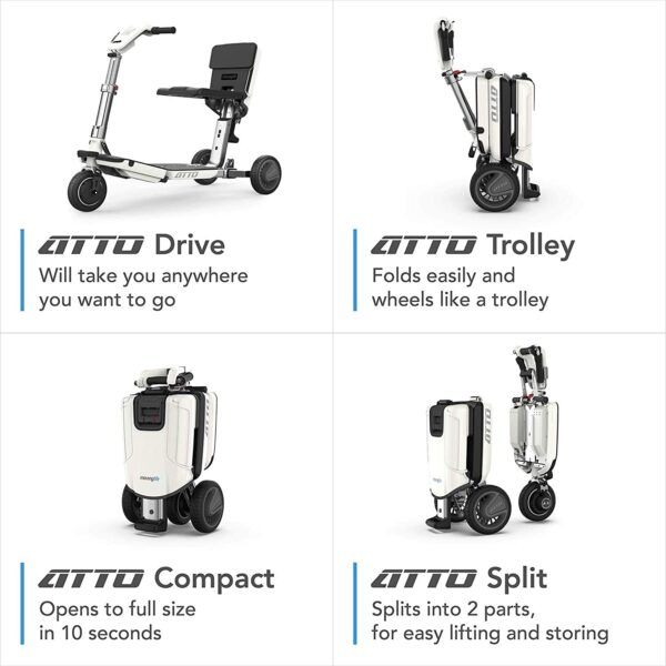 ATTO Folding Travel Powered Mobility Scooter by MovingLife, Full-Size Portable Electric Scooter, Lightweight Lithium Battery, Airline Approved