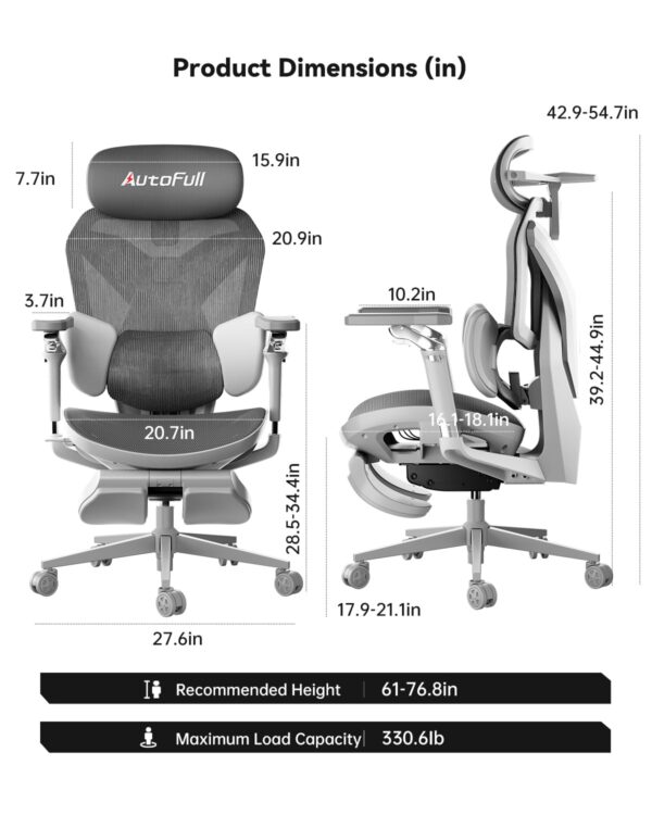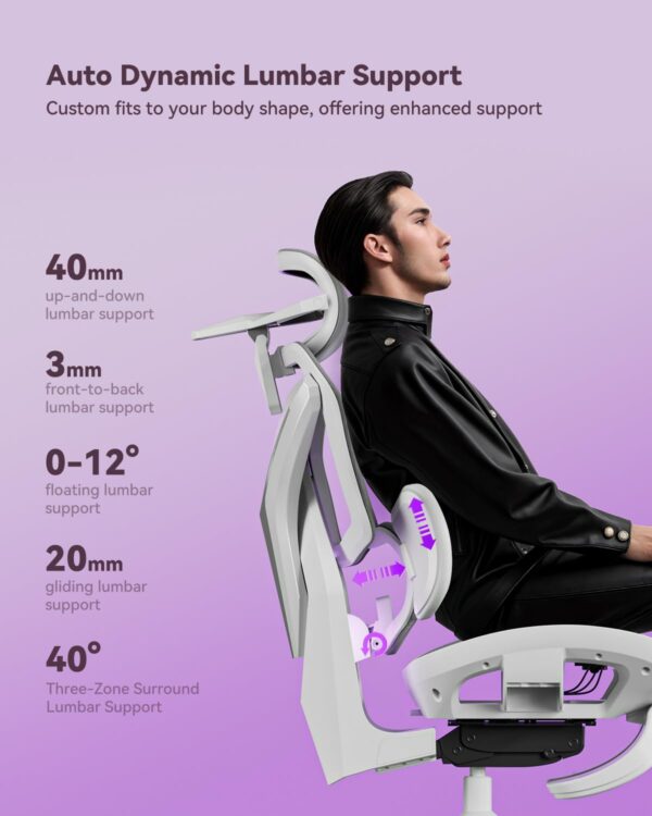 - 【3-Zone Lumbar Support & Sliding Adjustment】Say goodbye to back pain with AutoFull’s 3-Zone Dynamic Lumbar System in the G7 office chair. It targets three pressure-relieving zones for full coverage and protection. Enjoy 10-way precision adjustments—1.6″ up/down (6 levels), 1.2″ forward/backward (5 levels), 12° lumbar rotation, and stepless 0.8″ recline. Plus, 40° tilt and 14° side cushioning reduce strain during long hours.