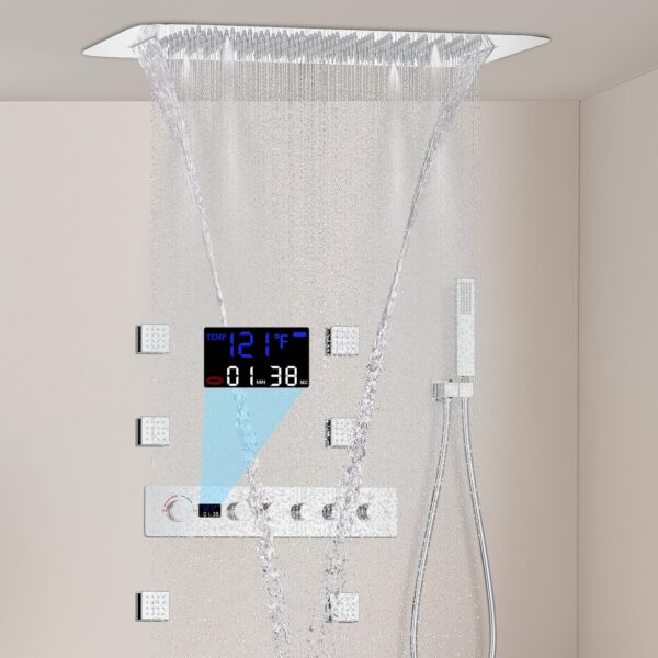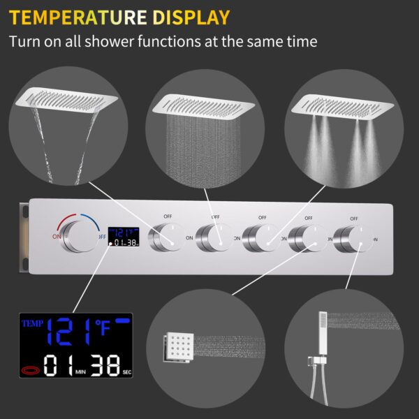 - 【Anti Scald Thermostatic Function & Temperature Display】digital shower jets system is equipped with a pressure balanced thermostatic valve maintain a precise water temperature. No longer have to worry about sudden fluctuations in water temperature and check. LCD intelligent digital display screen of hydroelectric power generation, real-time display of water temperature. You can fine-tune the water temperature to your liking at any time, fast and precise