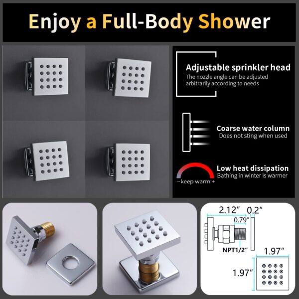 - 【Full Body Shower System 】: 6 Body spray massaging head, adjustable spray face. Up, down, left, right rotation direction, corresponding to the requirements of you and your family. Enjoy a full-body shower, with the body spray you can shower from all angles and enjoy an invigorating