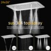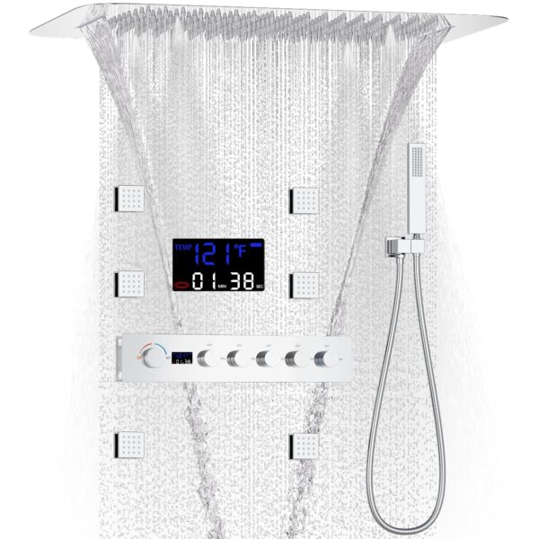 AYIVG Thermostatic Shower System with Body Jets 16 * 24 Inch Ceiling Mount Rain Shower Faucet Set Temperature Display Shower System Chrome Multi Shower Head System with 5 Ways Shower Valve