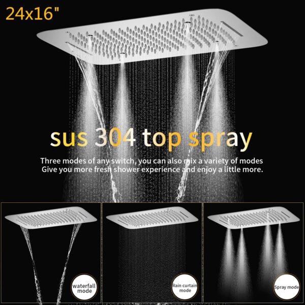 - 【3 In 1 Functions Showerhead】16*23 inch oversized shower head, large enough shower space to enjoy the shower to the fullest. The 3 settings have a rain shower, spray, and waterfall functions, which can make you look for more showering fun in the shower environment and break the traditional single rainfall.