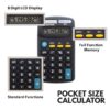 • ⭐ 8-DIGIT DISPLAY. The pocket-size calculator features an 8-digit display with full function memory. Delivers efficient calculation and easy readability of numbers. Measure: 4.5″ x 2.5″ x 0.75″