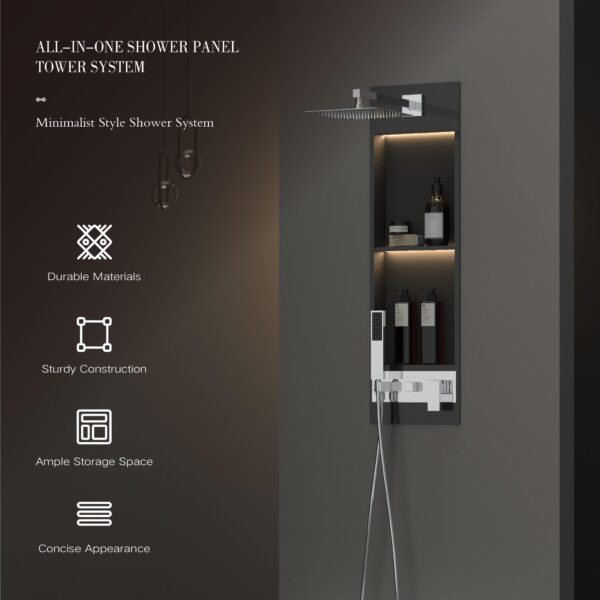 - 【All in One】This Bernkot Shower System combines a rainfall shower head, a handheld shower head with shower hose, and a 2-tier LED shower niche for storage, all in one convenient design. With its modern aesthetic and practical features, this shower panel system gives you a luxurious bathing experience.