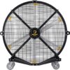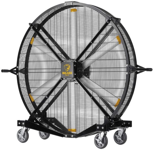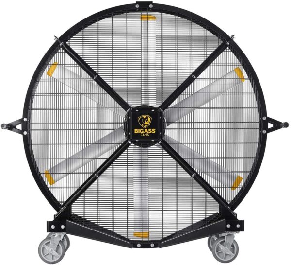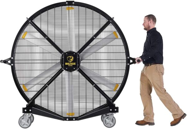 - Easy To Move: Black Jack’s 6-foot diameter and slim profile allow it to easily move through indoor spaces with standard doorways; 4 large, indoor/outdoor rubber wheels and handles mounted to both sides of the fan means one person can push Black Jack exactly to where you need airflow