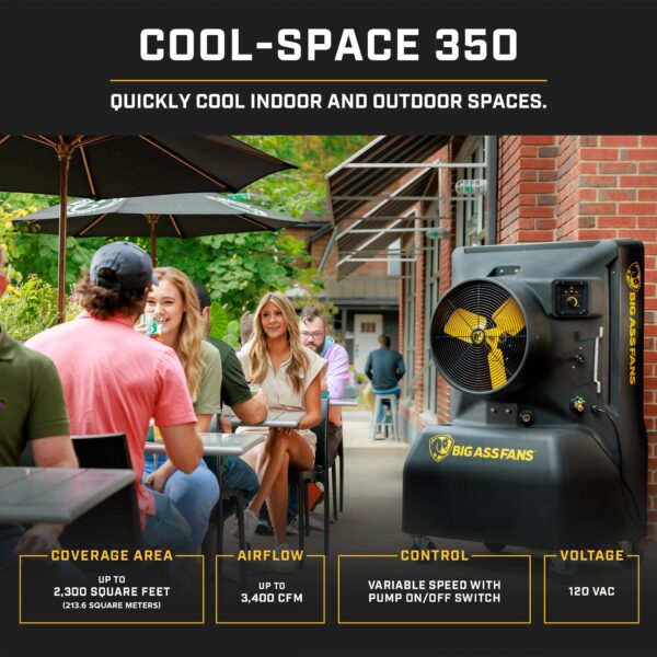 Big Ass Fans – Cool-Space 350 – Portable Evaporative Swamp Cooler, Indoor and Outdoor Use, 16 Gallon Capacity, Variable Speed for Ultimate Cooling in Workshops and Garages