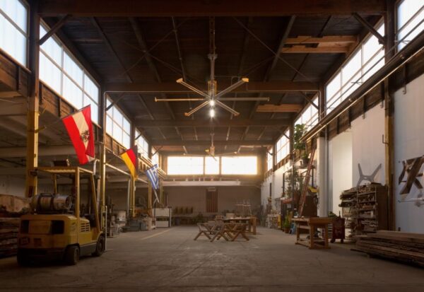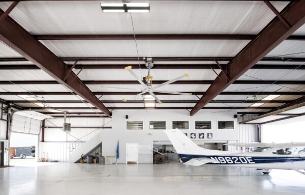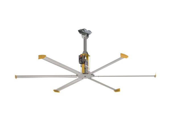 Big Ass Fans – ShopFan, 14 ft. HVLS Industrial/Commercial Ceiling Fan, Yellow/Silver Aluminum, 220V/1ph, 2ft. Extension Tube, Variable Speed