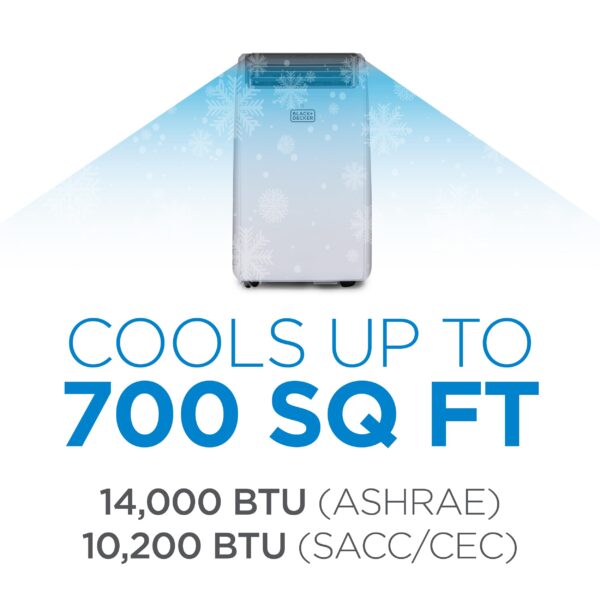 BLACK+DECKER Smart Portable Air Conditioner with Heat, 14,000 BTU Cooling, 12,000 BTU Heating for Rooms up to 700 Sq. Ft., Follow Me Remote, BPACT14HWT, White