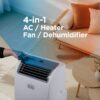 - Four-in-One Unit: Our 14,000 BTU ASHRAE (10,200 BTU SACC) air conditioner also offers 10,000 BTU Heat for cold winter months. Portable AC with heat also functions as a dehumidifier & fan