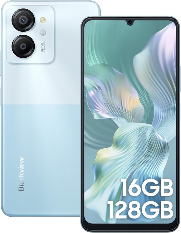 Blackview Color 8 Unlocked Phones, Octa-Core 16GB+128GB/SD 2TB Android Phones, 50MP Camera Mobile Phone, 6000mAh+18W, 6.75″HD+ 90Hz, 3 Card Slots, 4G Dual SIM Phone, Fingerprint ID, T-Mobile Cellphone