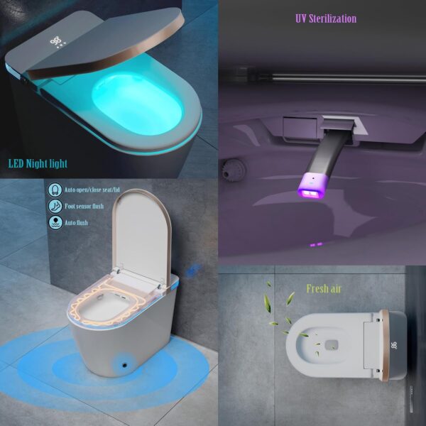 - Safety tankless bidet toilet: Equipped with leak protection, our one piece smart toilet prioritizes your safety. The integrated electrical safety features ensure a worry-free experience in any bathroom environment.