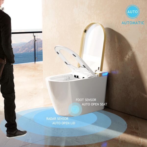- Automatic Smart Toilet Experience hands-free convenience with our smart toilet’s radar sensing technology. The lid automatically opens as you approach, ensuring a touchless, hygienic experience every time.