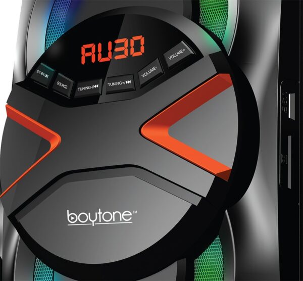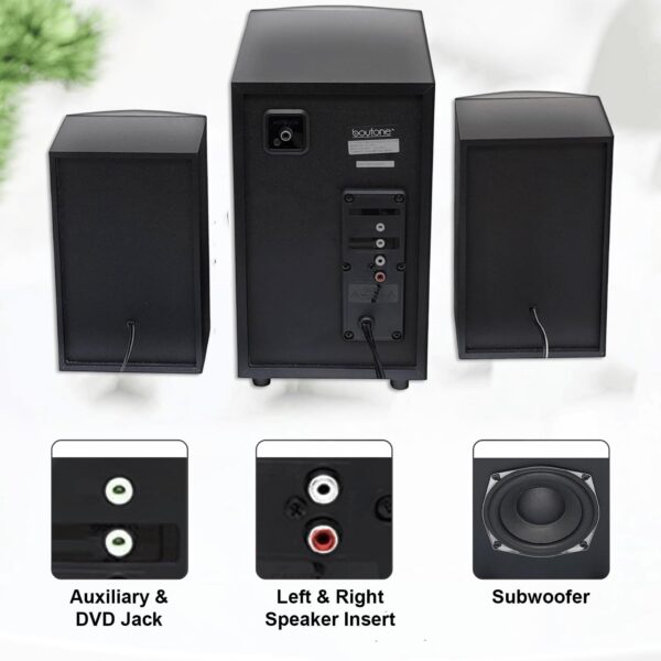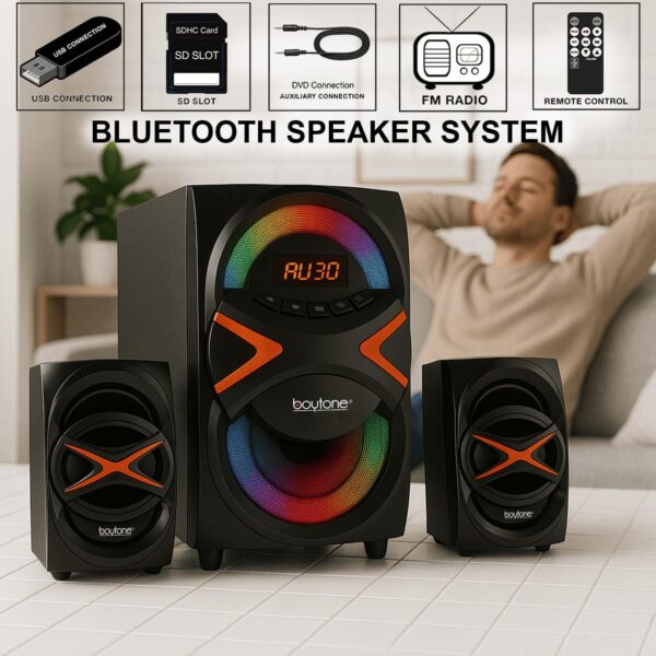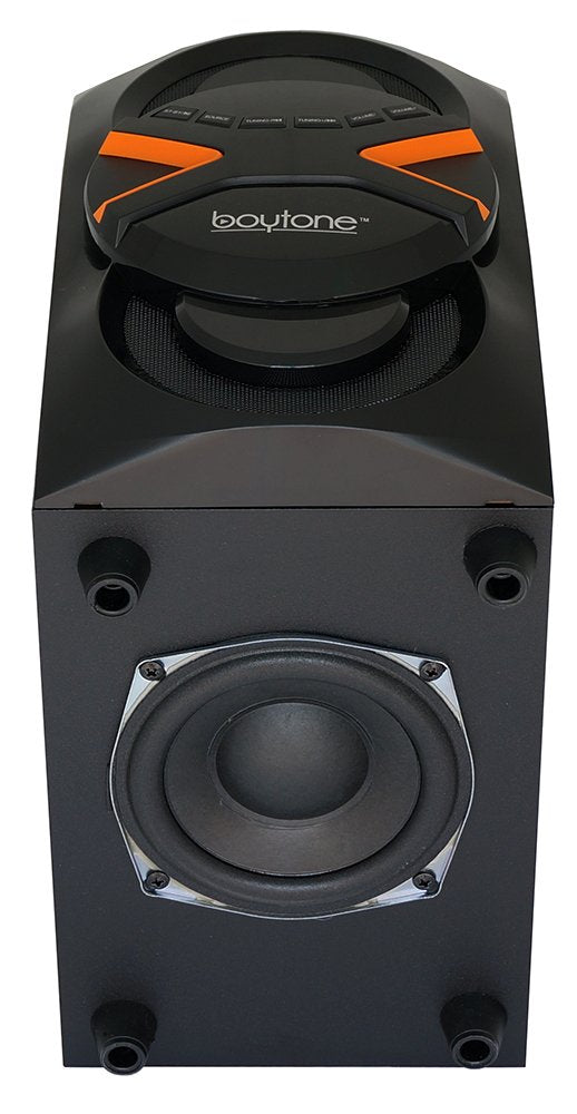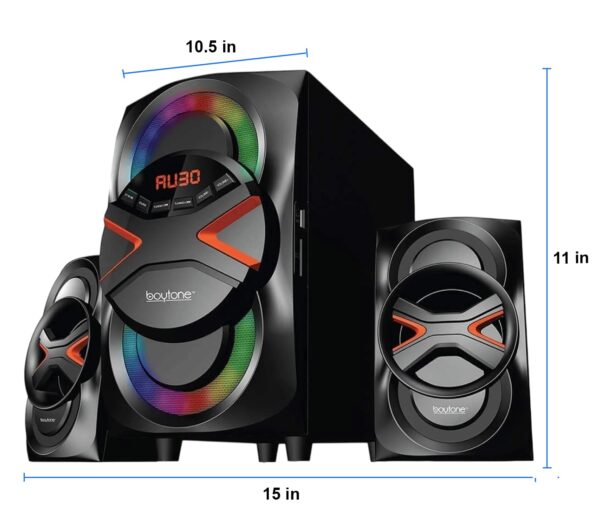 Boytone BT-326F, 2.1 Bluetooth Powerful Home Theater Speaker System, with FM Radio, SD USB Ports, Digital Playback, 40 Watts, Disco Lights, Full Function Remote Control, for Smartphone, Tablet., Black