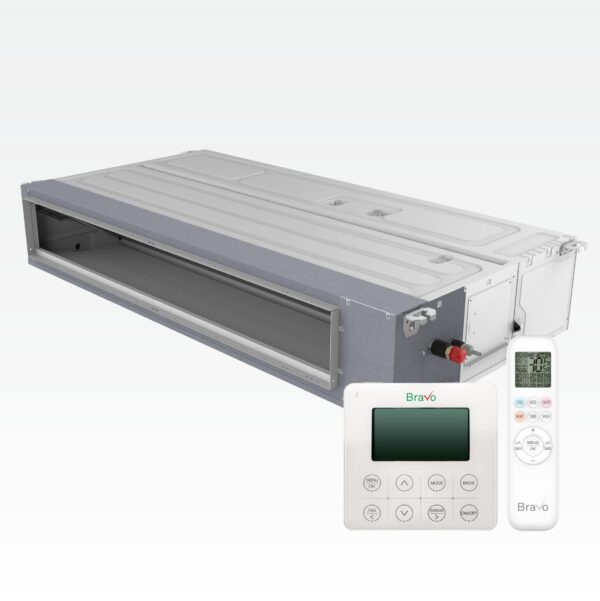 - BRAVO 30,000 BTU Multi Zone Outdoor Condenser 23 SEER2, 230V, with (3) Concealed Duct Air Handlers 9,000 + 9,000 + 9,000 BTU Includes smart port adapters to individually control each air handler from anywhere using your smartphone and a BRAVO Remote app.