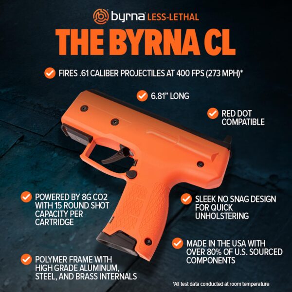 - Ultra-Compact Design: The Byrna CL is our most concealable launcher ever, measuring just 6.81” long—38% smaller than the Byrna SD and 44% smaller than the Byrna LE.