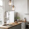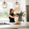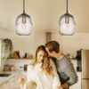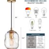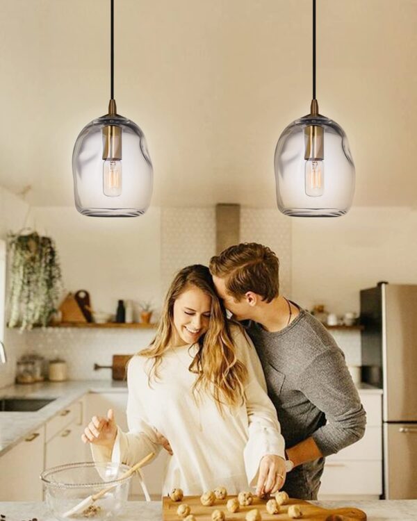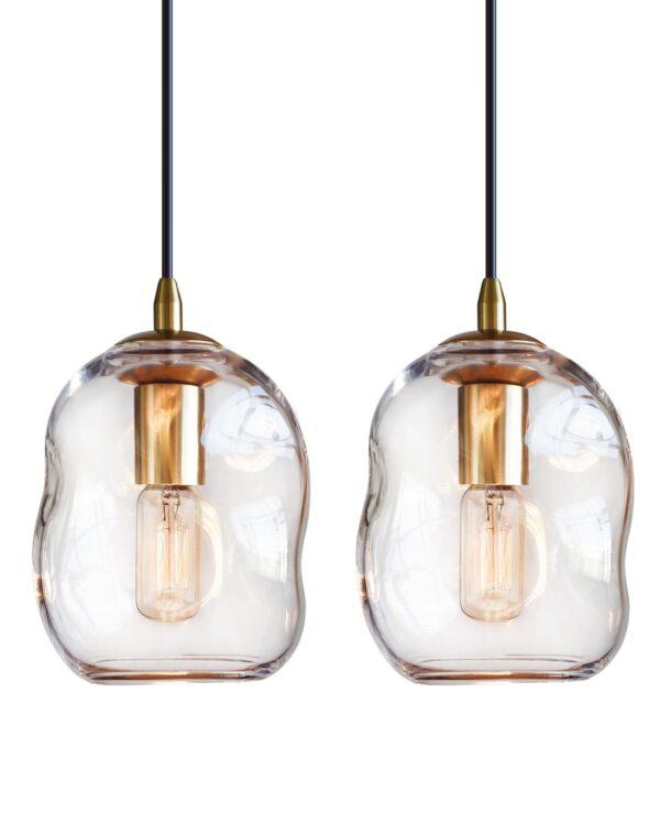 CASAMOTION Pendant Lighting Kitchen Island Modern Clear Glass Organic Globe Gold Kit Adjustable Cord Hanging Light Fixtures Dining Room Table Bar Counter Bedroom 8 Inch Height 2 Pack