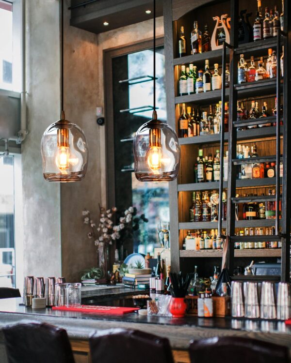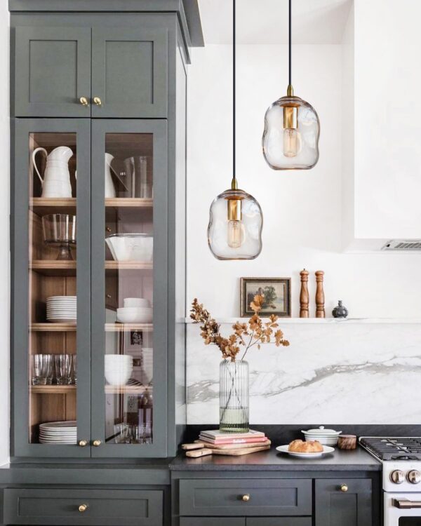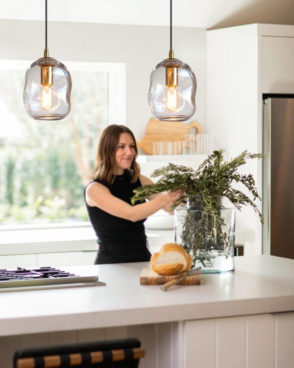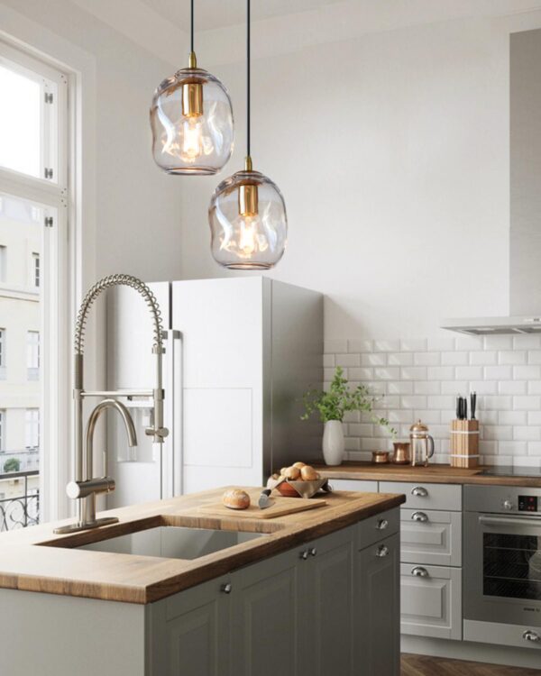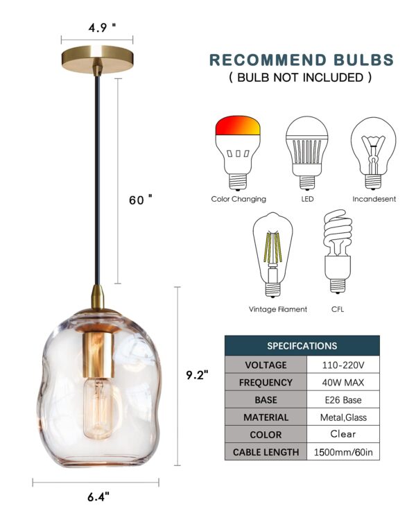 - 【Lifestyle & Art Glass】Modern Oganic Globe Shade Clear With Gold Kit,Hand Made Glass Light Fixtures for Bedroom kitchen Island,Dining Room Table,living Room,Restaurant,Coffee shop,Office.