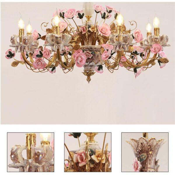 • Elegant and Luxurious Design: Our French Chandelier features a stunning combination of pastoral colors, intricate floral details, and luxurious artistry, adding a touch of sophistication to any living space or bedroom in your villa