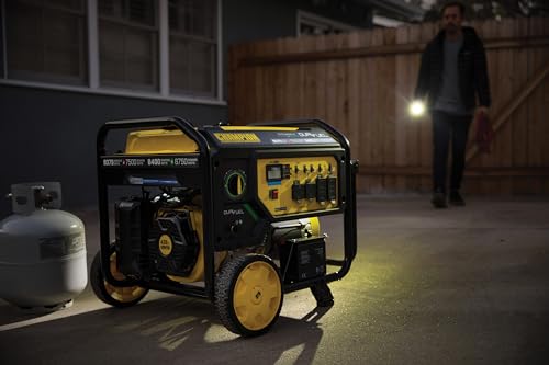 - Dual Fuel: Operate your 7500-watt portable generator right out of the box on either gasoline or propane, plus features CO Shield carbon monoxide auto shutoff system