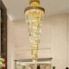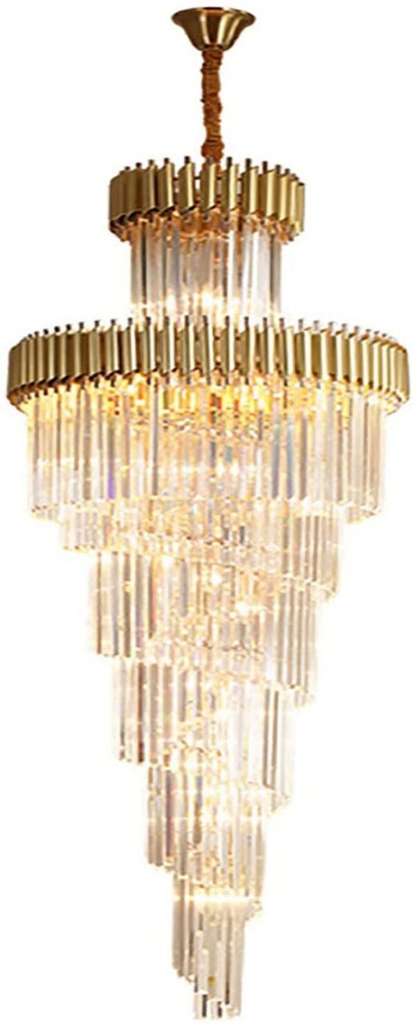Chandelier Ceiling Light American Modern Concise Revolving Stair Light,Living Room Villa Hall Crystal Light,E14 Nordic Duplex Stair Chandelier,Long Chandelier-Gold and Gold 70210cm