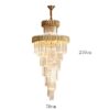 • Lighthead Type:E14 Number Of Light Sources:12/18/27 Color Categories:Gold.Black.Crystal,Gold.Gold.Crystal,Size 12 Head 45*150cm,18 Head 60*180cm,27 Head 70*210cm,Chain 50cm,Adjustable.Light Source:Without Light Source