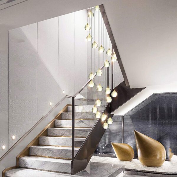 Chandelier Ceiling Light Modern Crystal Spiral Raindrop Chandelier,G4 Simple Stairs Long Chandeliers Spiral Staircase Chandelier Fixture for Hotel Living Room Home Bar-Gold 36