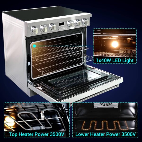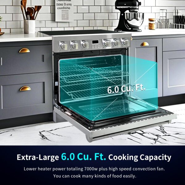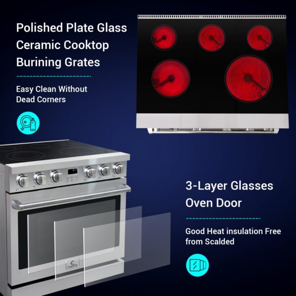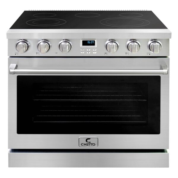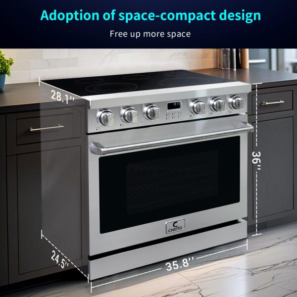 CHETTO C 36-inch Freestanding Electric Range Oven with 5 Cooktop Elements with 7 Cooking Power Options Convection Stove 6.0 cu. ft. Large Capacity Stainless Steel