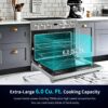 - LARGE CAPACITY: With a capacity of 6.0 cu. ft. this electric oven can easily accommodate large meals. Easily holds up to 13 pounds of turkey, everyday baking for a family of 4-6, roasting or multiple dishes at once.