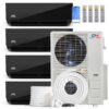 - System comes with Installation Kits for each air handler including 25ft Pre-Flared and Insulated Copper Line Sets, 25ft Communication Wires between Indoor and Outdoor unit, Small Accessories, and a 16ft Drainage Extension.