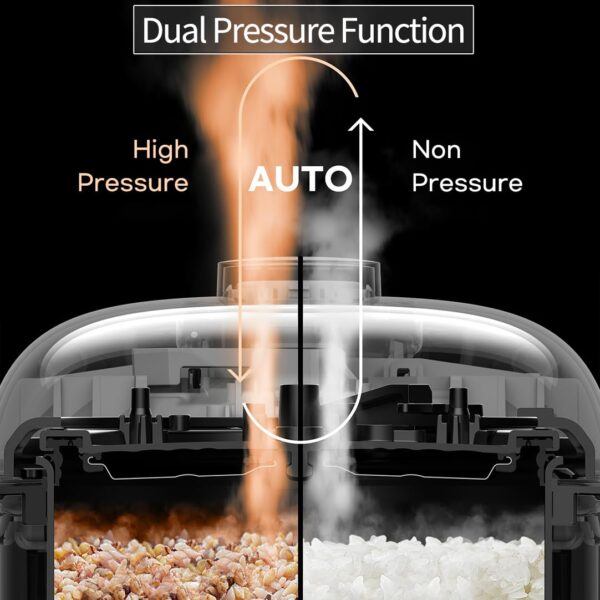 - DUAL PRESSURE: Cooking with High Pressure will Result in Deliciously Sticky Glutinous Rice, While Cooking without Pressure will Yield Unbelievably Fluffy Rice. 6-cup, 1.14Quarts (uncooked) 12-cup, 2.28Quarts (cooked) 6 person