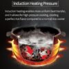 - INDUCTION HEATING: In contrast to conventional bottom-plate heating, induction technology envelops the inner pot entirely, resulting in a faster and more efficient cooking process, ultimately yielding more delectable outcomes