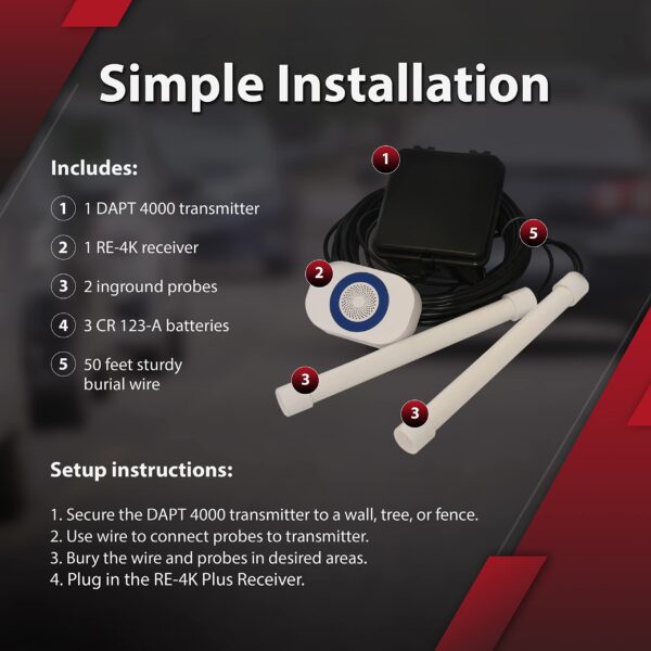 Dakota Alert Driveway Alarm System -DUAL-4k Plus Bundle – DAPT-4000 Driveway Alarm & RE-4K Plus Receiver, Directional Vehicle Sensor, Driveway Alarms Wireless Outdoor Weatherproof, 1-Mile-Long Range