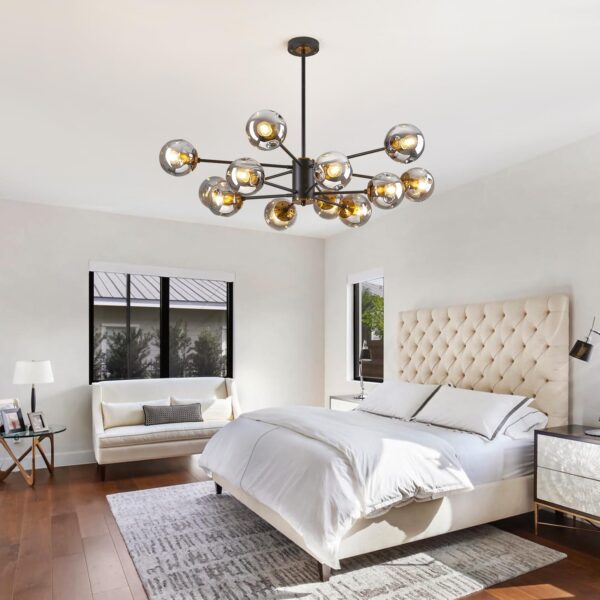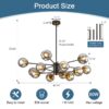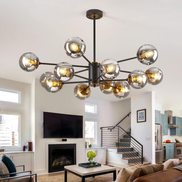 DDLLDESHI 2 Tiered Modern Gold Chandelier Sputnik Ceiling Light Fixture with 12 Globe Glass Bubble Shade Chandeliers for Dining Room Hotel Bar Home Billiard Room (41″ Large Black Chandelier)