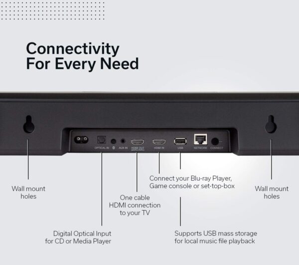 - IMPACTFUL 3D SURROUND SOUND – With the combined effect of premium .75″ soft dome tweeters, 2.15″ full-range drivers, and 2.15″ x 3.5″ passive radiators, the sound bar delivers immersive 3D surround sound in hi-res audio formats like Dolby Atmos and DTS:X