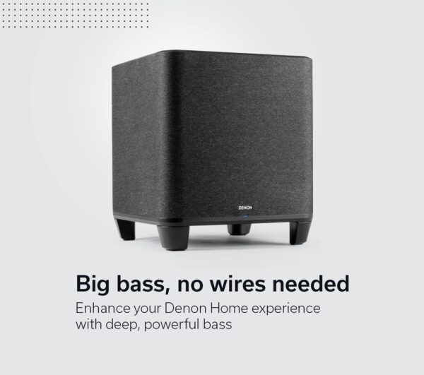 - CUSTOMIZE YOUR HOME THEATER EXPERIENCE – Pair the sub with Denon Home Sound Bar 550 and a pair of Denon Home 150/250/350 Speakers or HEOS Speakers to create a 5.1 surround sound system, or extend the bass power of your speakers in a single or stereo setup